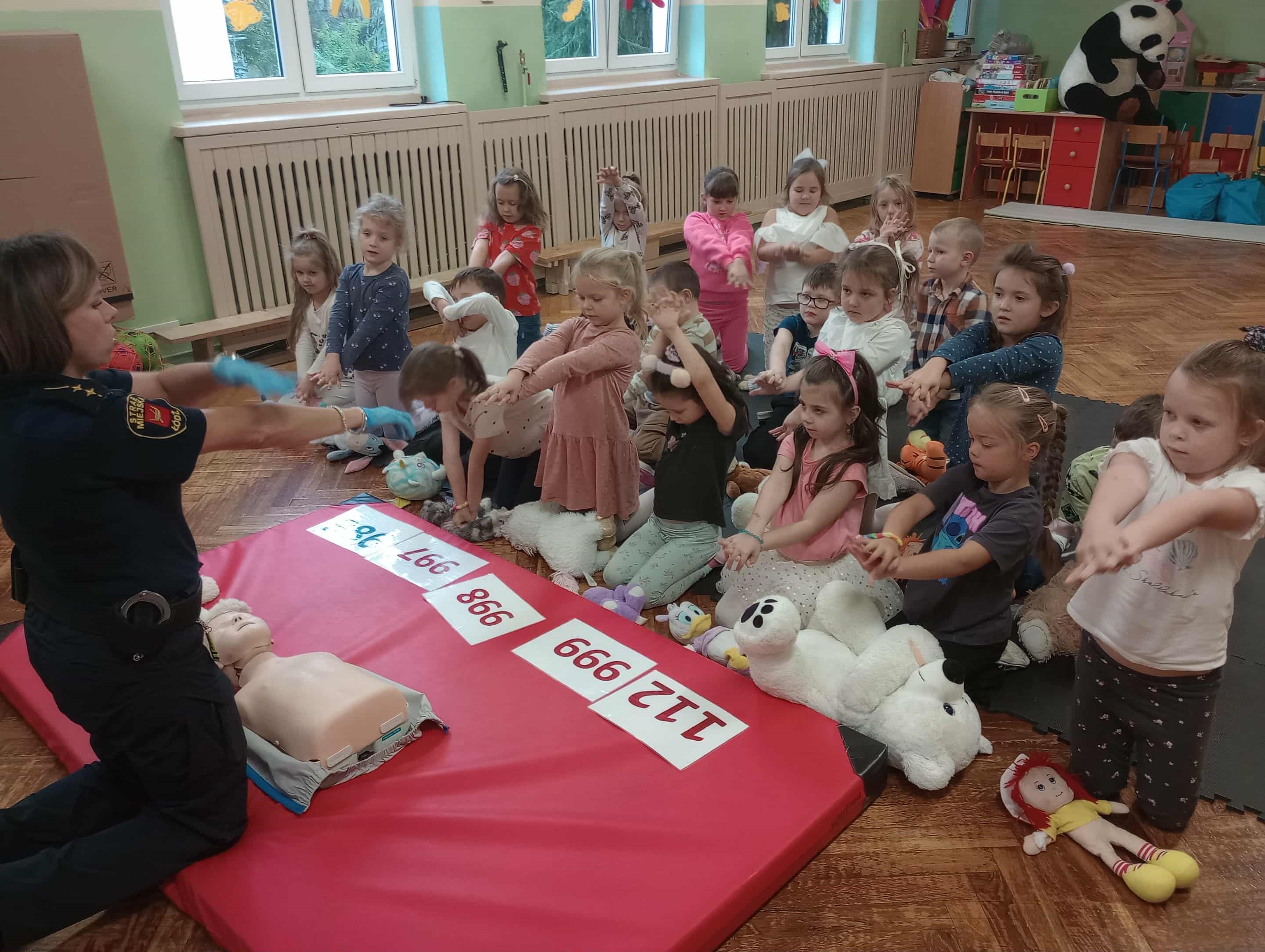 Z dużym zaangażowaniem uczestniczyliśmy dzisiaj w zajęciach przeprowadzonych przez Straż Miejską - utrwalaliśmy zagadnienia związane z bezpieczeństwem i udzielaniem pierwszej pomocy.